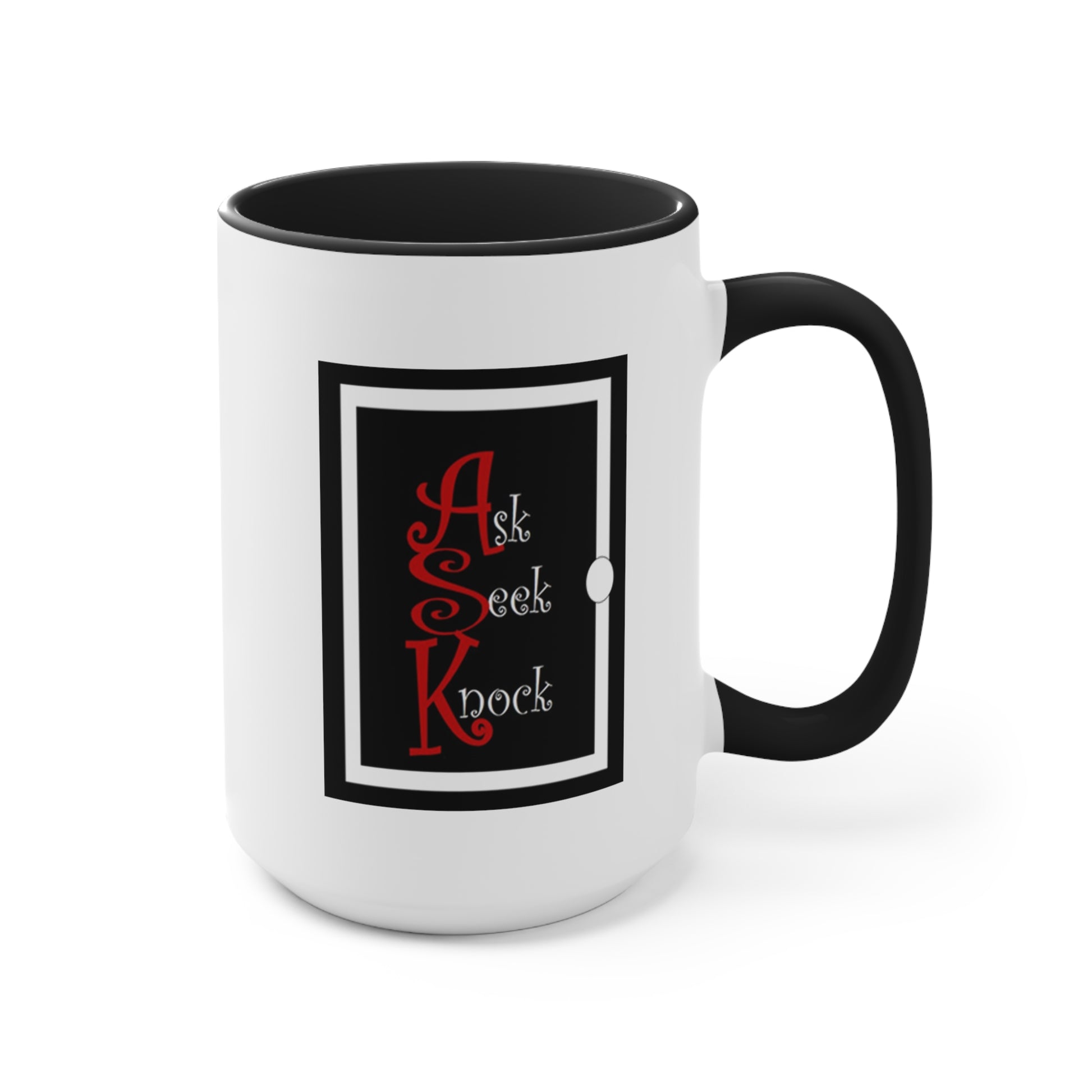 This beautiful two-tone inspirational prayer mug is a great accessory for meditation and quiet time. Available in 2x sizes: 11oz and 15oz, as well as in 2 different color schemes: white with red inside, and white with black inside.